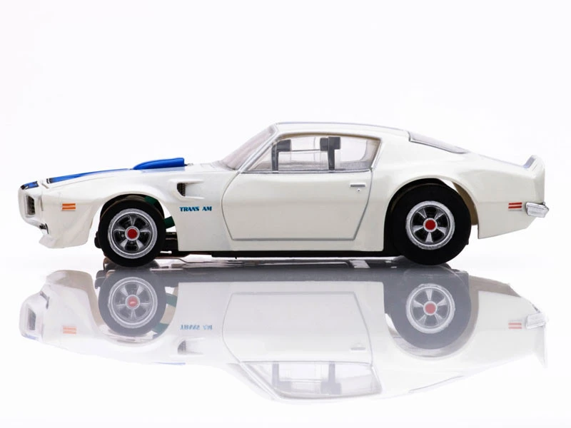 This is the AFX 1970 Pontiac Firebird Trans Am White/Blue Mega G+ HO Slot Car