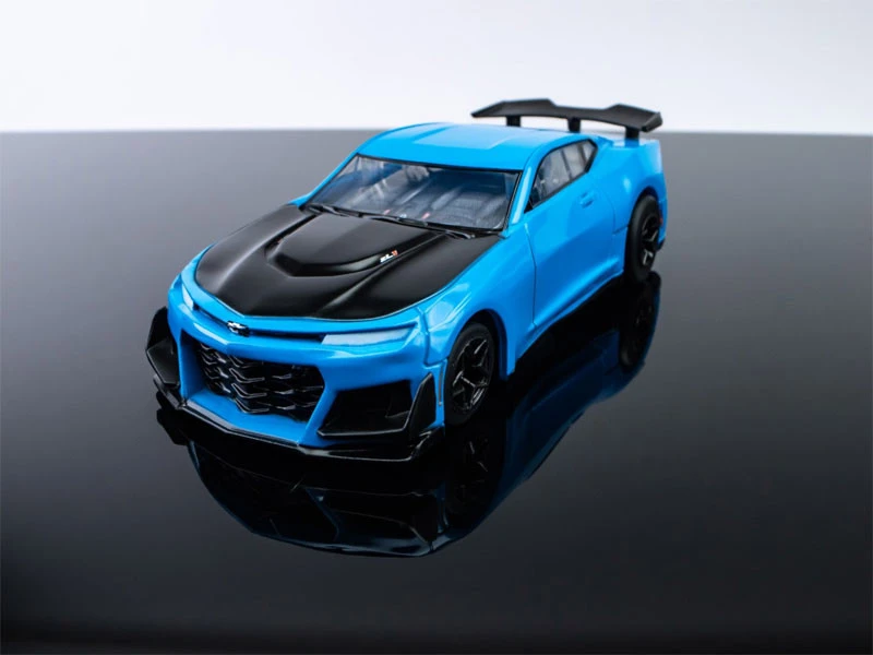 The AFX 2021 Camaro ZL1 1LE brings the heat thanks to the powerhouse Mega G+ chassis for smooth, thrilling accuracy and tons of speed. The car’s distinctly modern appearance has black-painted wheels and satin-black exterior accents adorning a rarely seen bright blue body.