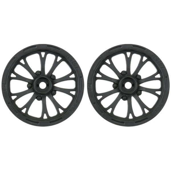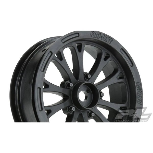 Do you need high-performance and perfectly styled drag wheels for your no-prep SC drag car? Pro-Line has you covered with the all-new Pomona Drag Spec 2.2″ Black front Wheels! The Pomona wheels were specifically made for no-prep Drag racing and are a perfect fit with Pro-Line’s Hoosier Drag 2.2″ Front Tires! The Pomona wheels are strong and lightweight 12mm hex wheels making them the ideal choice for performance drag racing. The wheel spoke design mimics what you would find at the Pomona Drag Strip on any given race weekend and will complete the look of your build. The Pomona wheel offset is ideal for 2wd Slash trucks converted to no-prep Drag Racing cars, which has exploded in popularity. The Pomona Drag Spec wheel and every other wheel that Pro-Line makes is proudly Made in the USA. Launch your no-prep Dragster to the next level with the Pro-Line Pomona Drag Spec Wheels today!