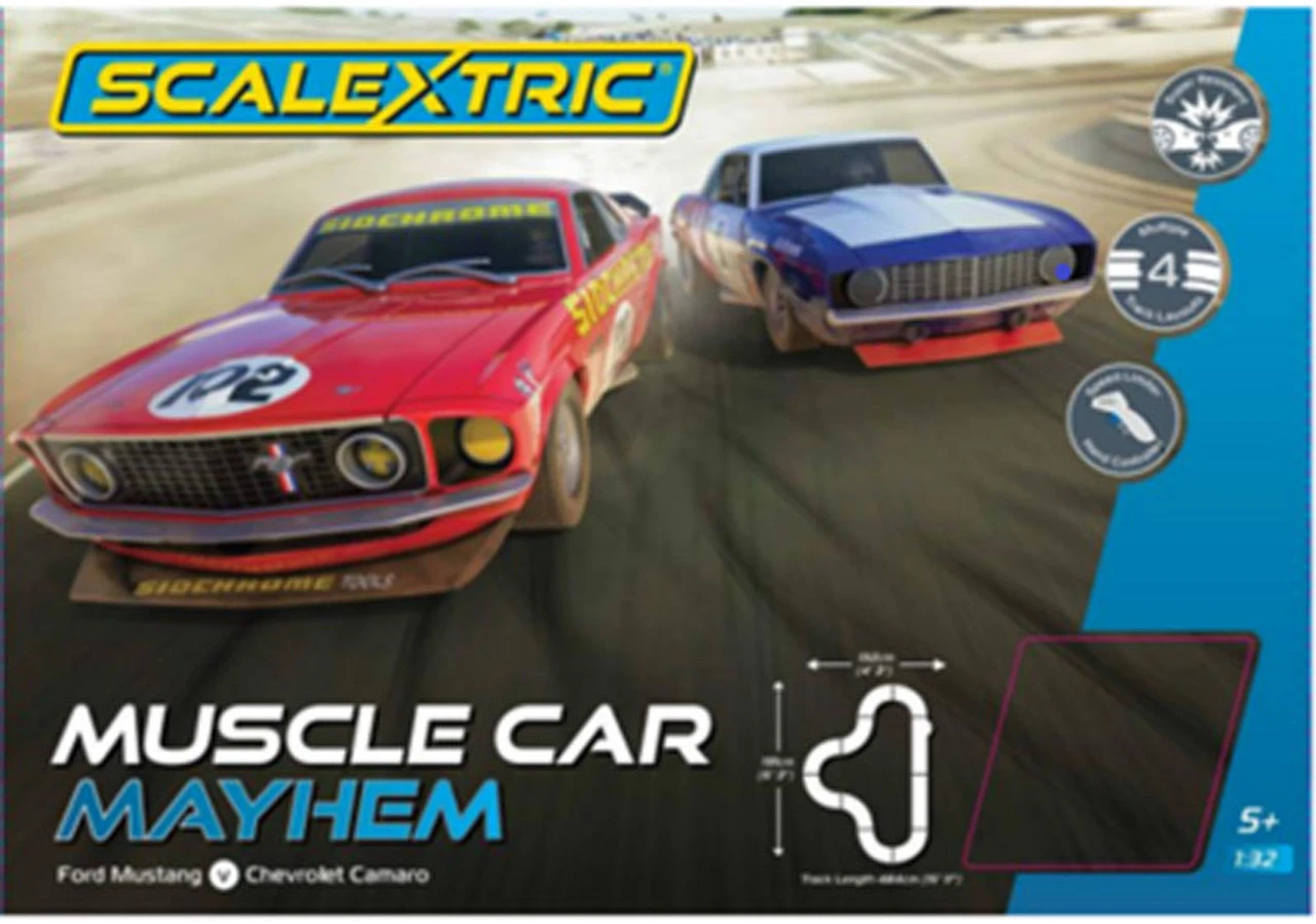 This is the Scalextric Muscle Car Mayhem 1/32 Slot Car Track Set