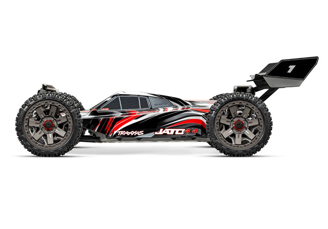 Factory-installed Extreme Heavy Duty Upgrade components give Jato 4X4 the superior strength and durability normally associated with Traxxas’ toughest off-road trucks. An ultra-rigid T-Bar reinforces the chassis with Extreme HD shock towers to support the suspension. Huge Maxx-Duty driveshafts transfer every ounce of the motor’s torque to the wheels with unsurpassed strength.