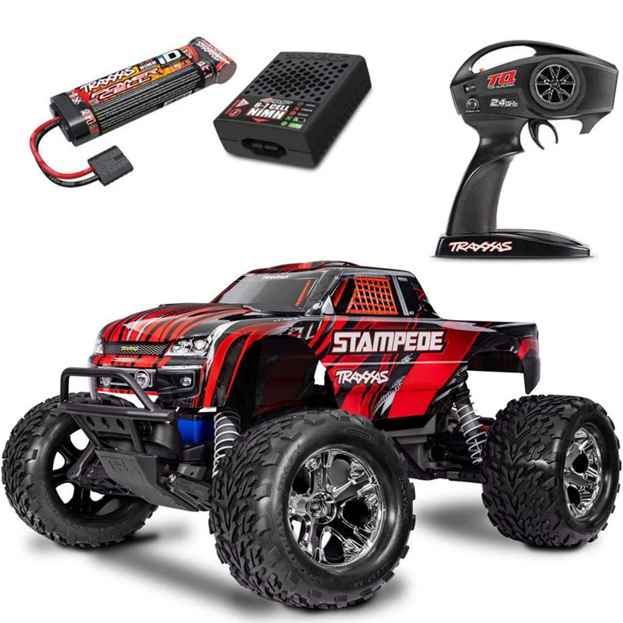 This is the Traxxas Stampede XL-5 Ready-to-Run 1/10 Scale Monster Truck with the ID Battery and USB-C charger. The truck comes with the 3000mAh 7-Cell 8.4V flat battery pack with ID connector, 4-Amp USB-C fast charger, and waterproof electronics on the truck. These are great trucks for people new to R/C, and they are a great way for kids to get involved. This is one of the best beginner trucks we have and they are an unbelievable value. These make an excellent gift!
