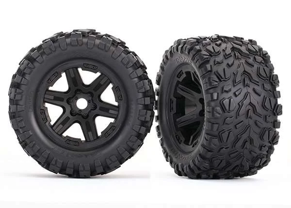 These are the is the Traxxas Talon EXT Tires Mounted on Black Wheels with 17mm Splined Hexes. Each package includes two tires with foam inserts, pre-mounted on the wheels.