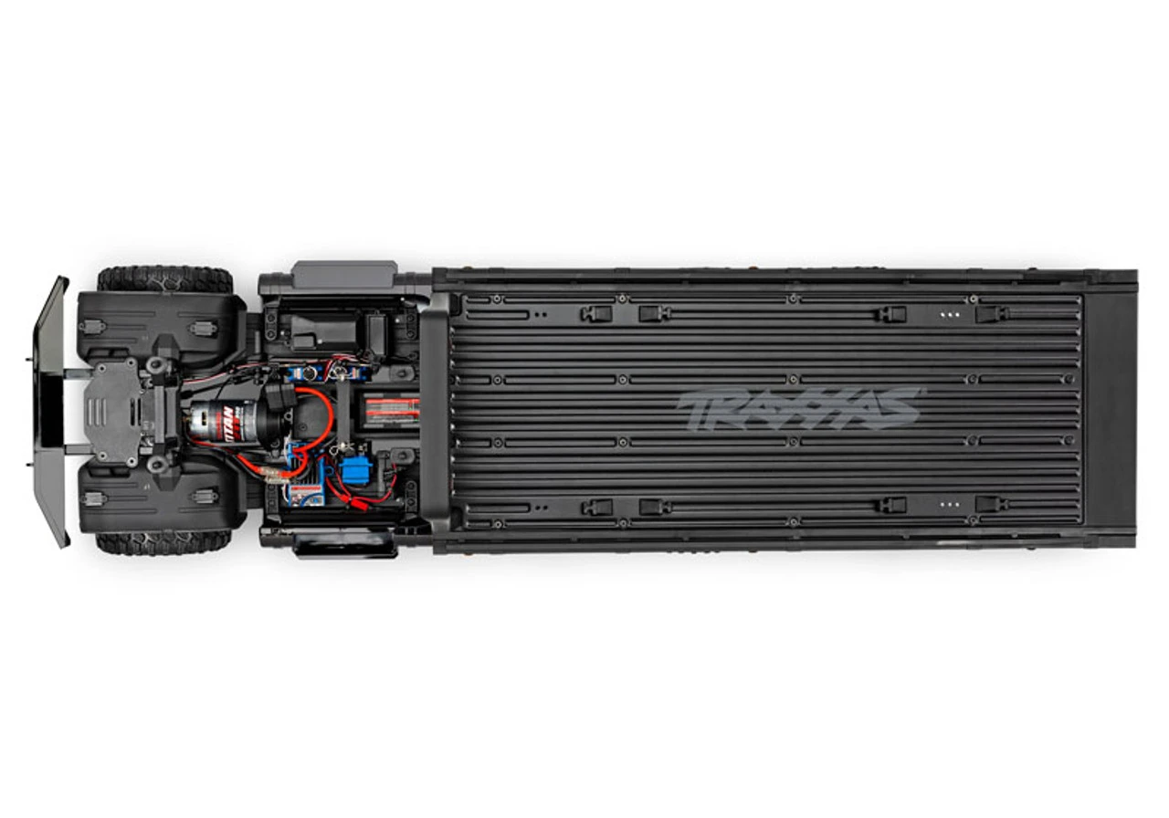 Based on the hugely capable TRX-6 platform, the RC Hauler is the biggest and baddest rig in the TRX lineup. The tough looks are backed up with even tougher performance. The rear bed features a working electric winch, adjustable wheel chocks, and tie-down bands to haul and display 4-Tec models with style. A highly detailed LED lighting system and black-over-black chrome body accessories give the Hauler a tough, menacing look. The Ultimate RC Hauler is built Traxxas Tough with portal axles, high-low transmission, and T-Lock remote locking differentials. When you’re ready for big-scale RC fun, nothing comes close to the Traxxas Ultimate RC Hauler.