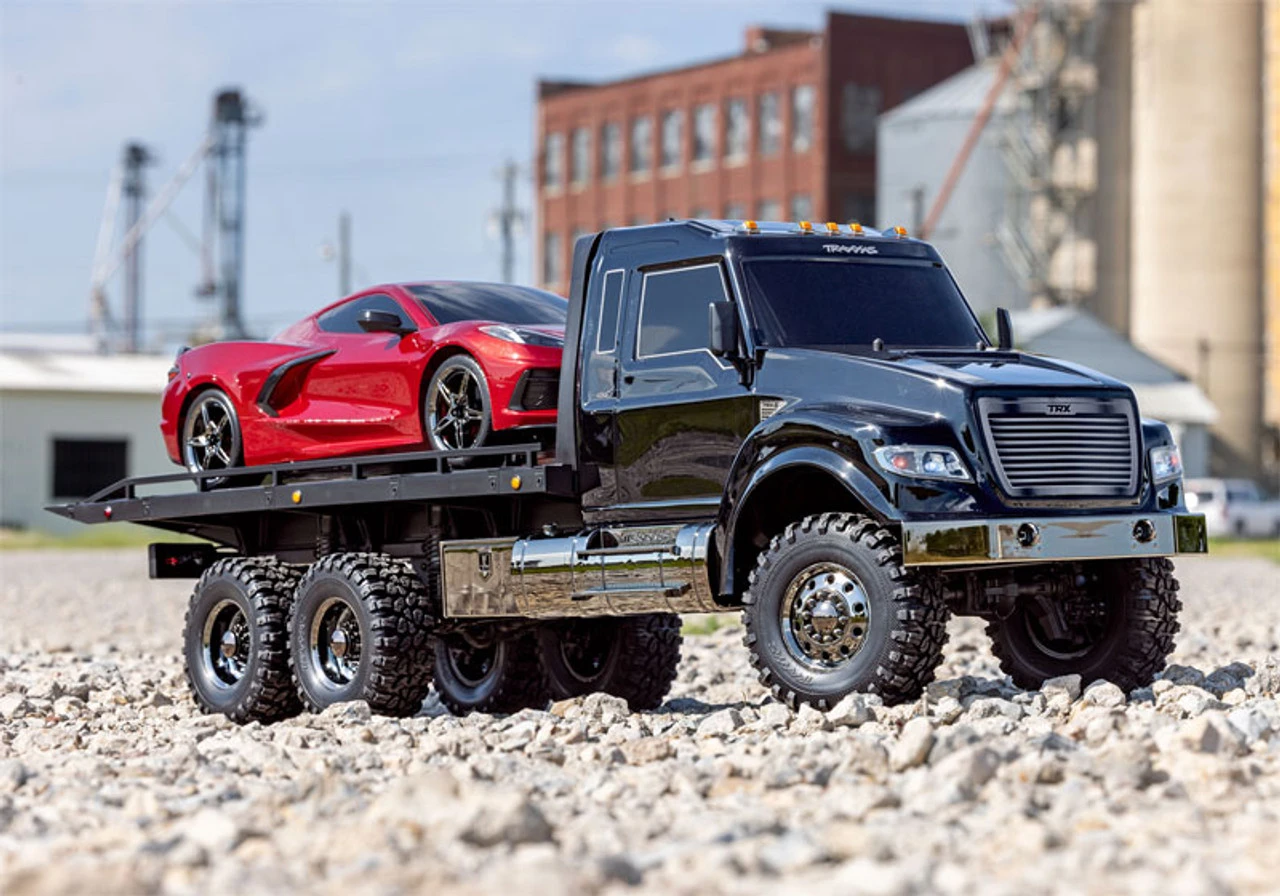 The Ultimate RC Hauler is the largest TRX-6 model with an extra long 23.7″ (603mm) wheelbase and oversize bed to haul your 4-Tec models in style. The highly detailed truck features deep gloss black paint over molded black chrome body accessories for an intimidating look to match its big rig attitude.